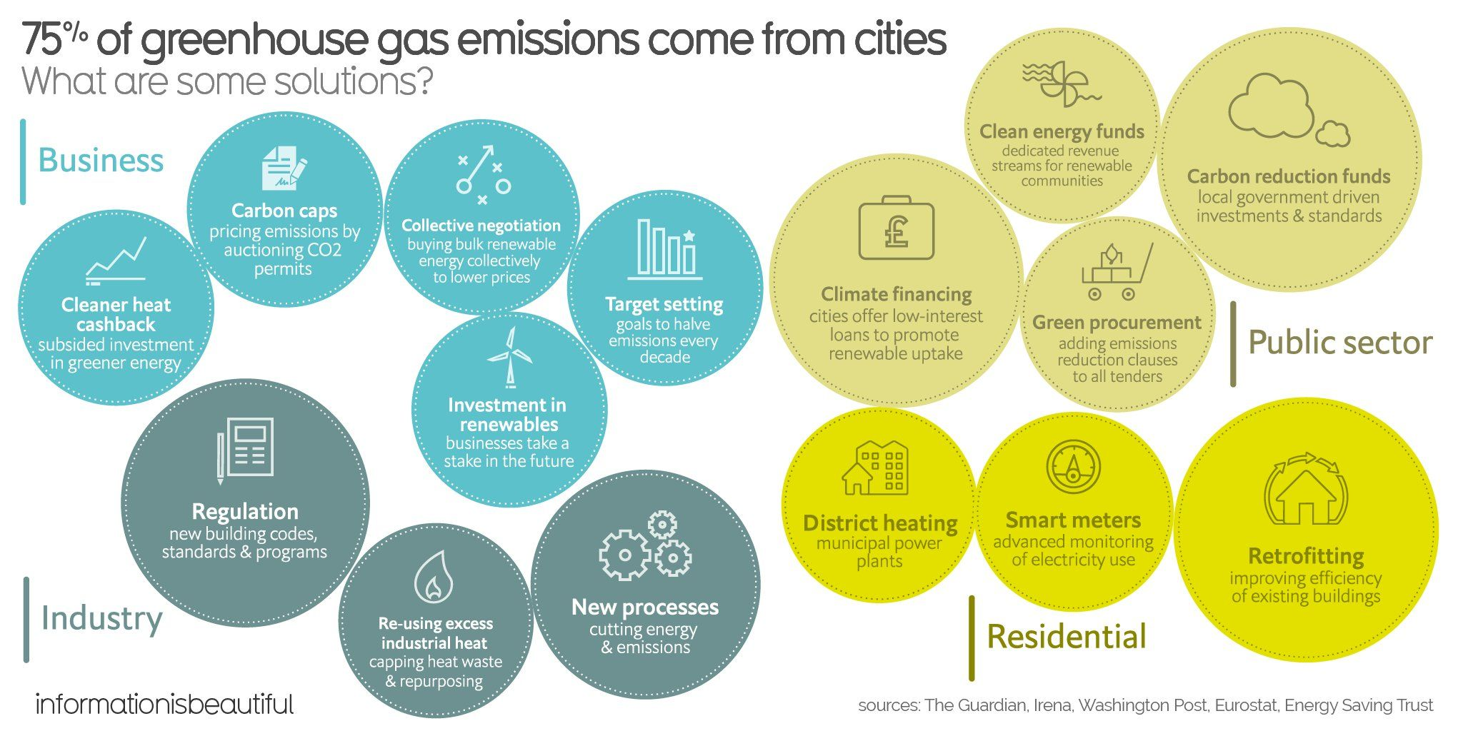 One of the last projects I worked on before I left Information is Beautiful was a graphic for E.on Energy about greenhouse gas emissions in cities, and how we can address them. Those graphics have now been published on the Economist's website.