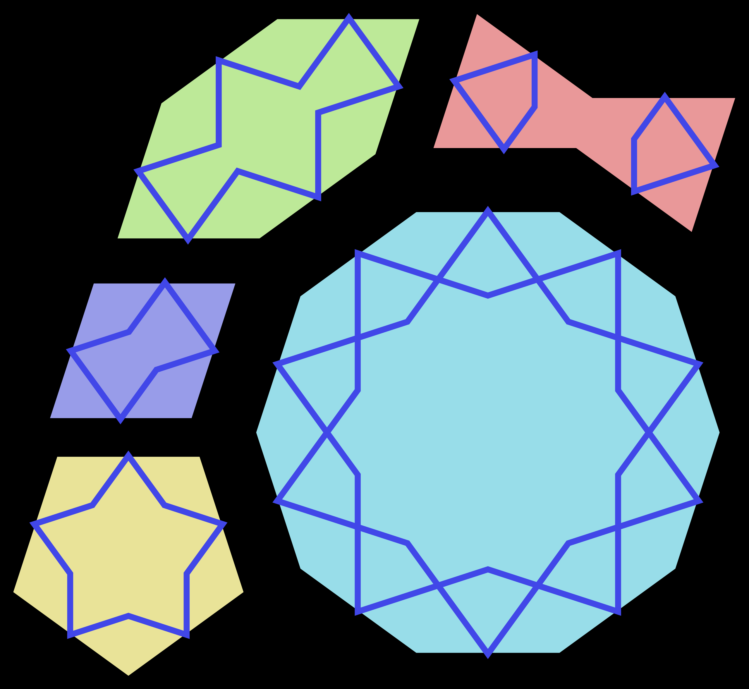 Why these tiles? Well, all sides of these figures have the same length; and all their angles are multiples of 36°. That means they almost always fit perfectly together. The Generalist Academy also points out another magical property they have: