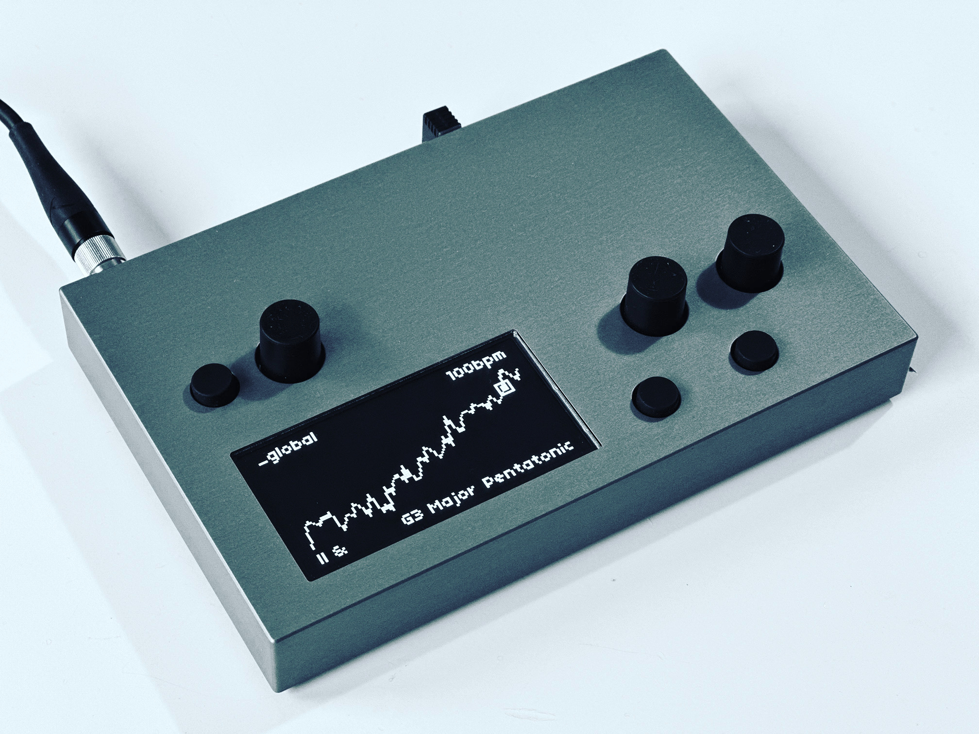 To use it, you interact with a grid of buttons - eight rows, and sixteen columns. Using the screen of the Norns, you select a combination of root note and a scale (major, minor pentatonic, dorian bebop, etc). The top row of the grid holds saved combinations (long-press to save, short-press to load). The rest of the grid is then used to play notes. Each row contains all the notes in the scale, from the root note upward. So what's the difference between rows? Well, they add a timbral parameter - it could be how long the note is held for, or (my favourite) a crossfade between a sharp square wave, and a gentle sine wave.