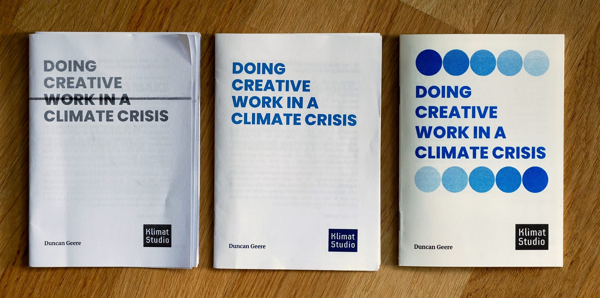 My riso printing experiments have borne fruit. A total of 80 pieces of zine-shaped fruit, to be exact - a zine called "Doing Creative Work in a Climate Crisis" that accompanied a workshop I gave at the end of March at STPLN.