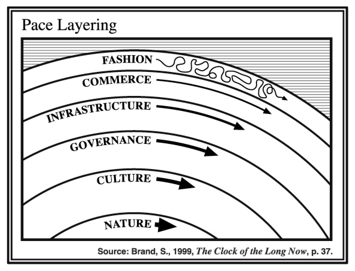 Are you familiar with the concept of pace layers? It's an invention of Stewart Brand, describing how society changes at different paces.