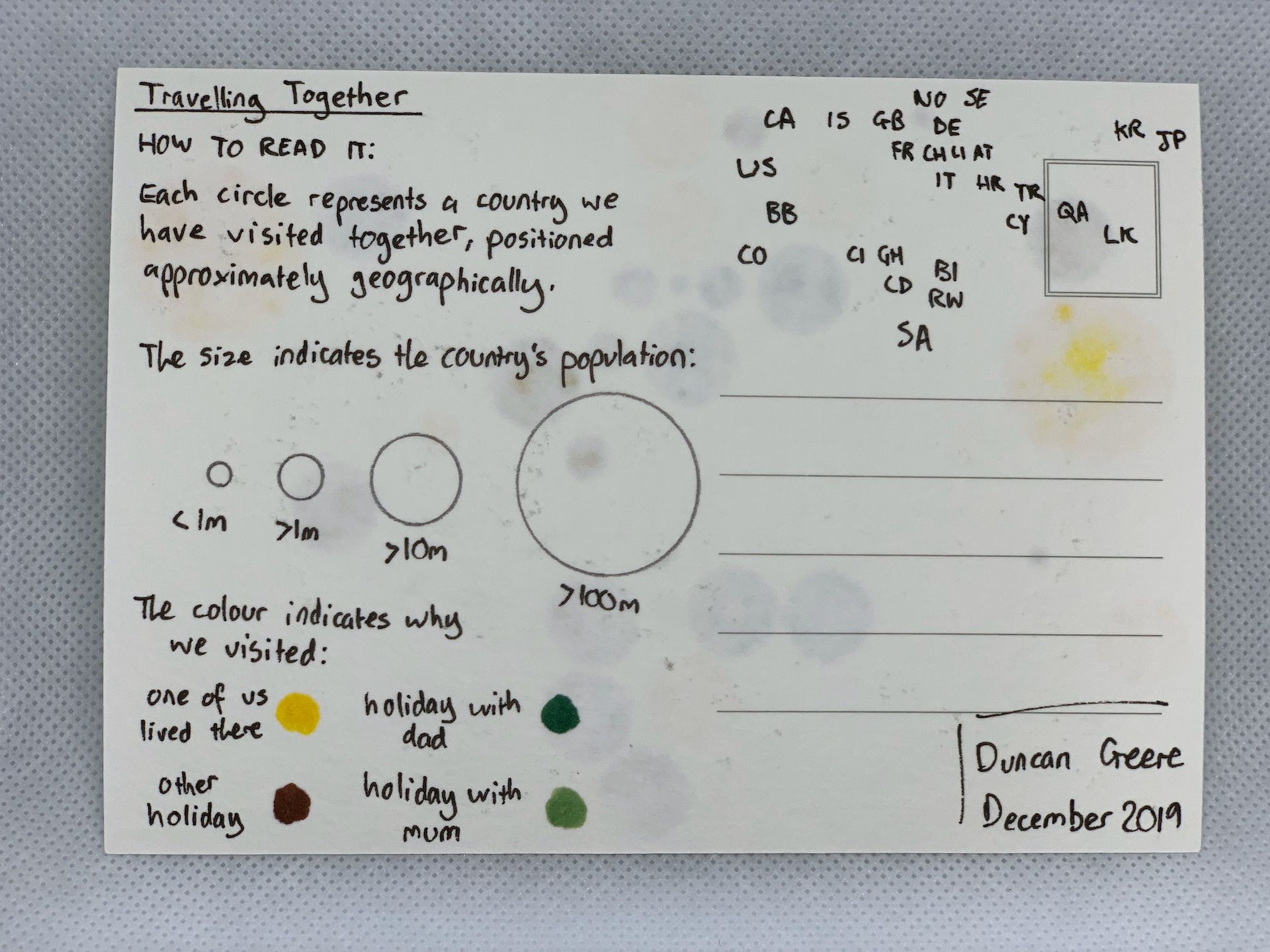 A few days ago, I shared a hand-drawn data visualization I made for my stepfather for Christmas. I also made a similar visualization for my sister, showing the countries we've visited together.