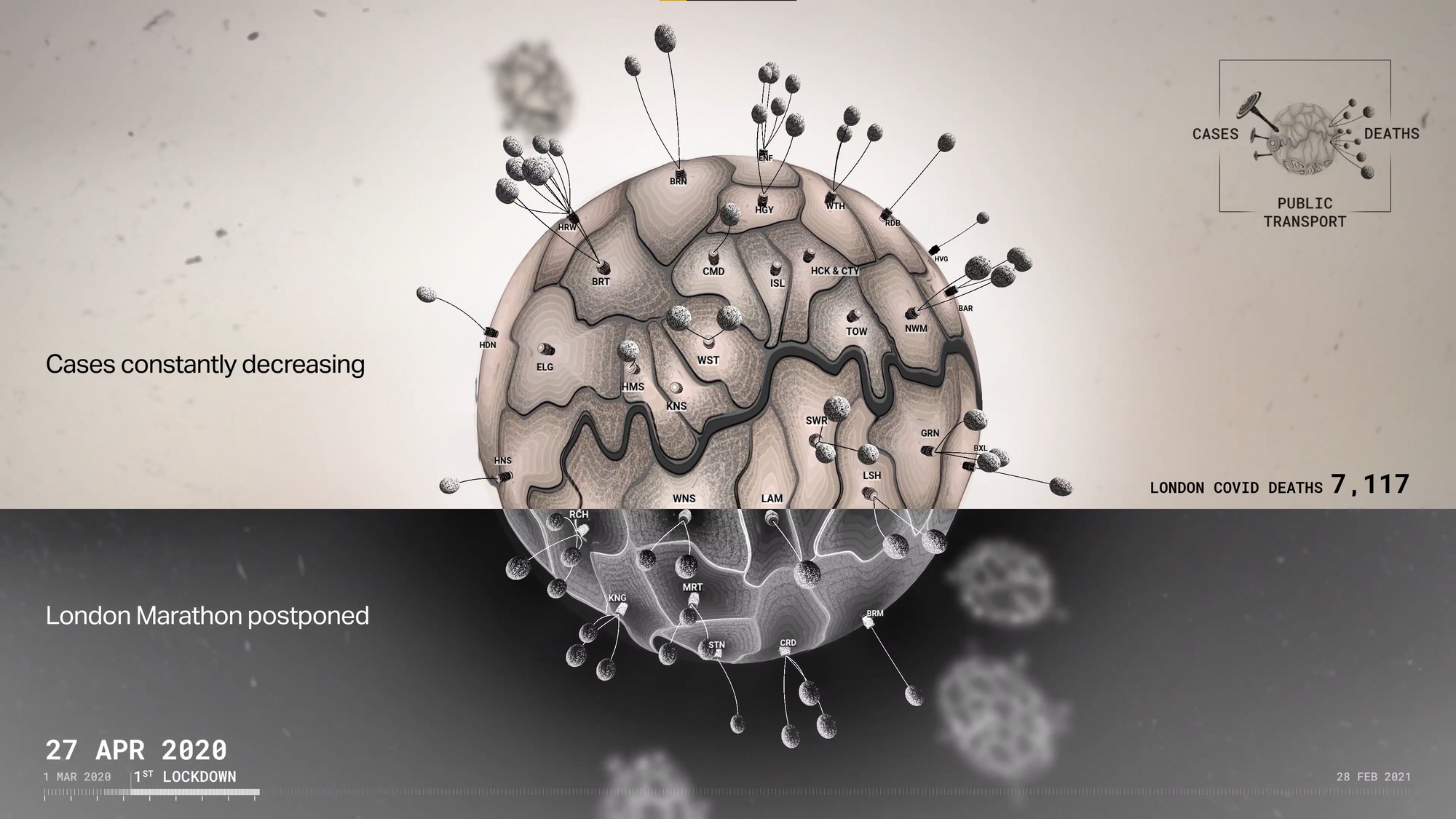 Last year I provided a sonification soundtrack to a data animation by Valentina D'Efilippo called London Under The Microscope, created for the Museum of London. It's one of my favourite things I've made in the last few years, so give it a watch/listen if you haven't already.