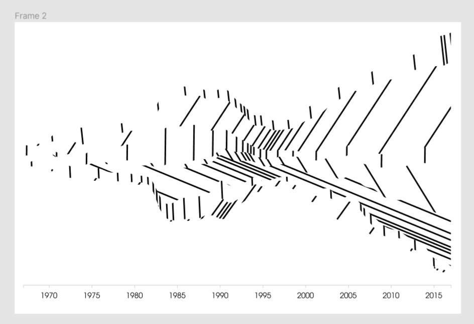 Improving it further would mean increasing the density of lines again, I suspect. There's definitely a code way I could do that which wouldn't mean aligning them by hand. Getting closer to the original would also mean finding a dataset (or faking one) which has more categories. Perhaps I'll look into those things another day.